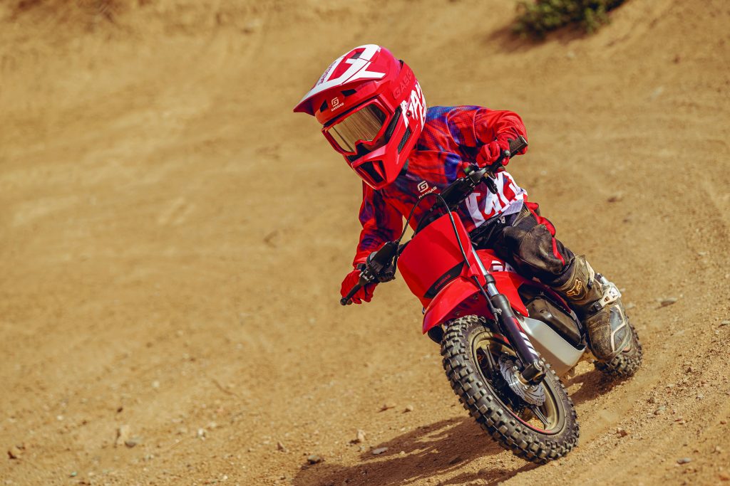 La GASGAS MC-E 2 est une mini moto tout-terrain électrique conçue pour les jeunes pilotes débutants (90–130 cm), facile à piloter, silencieuse et adaptée à l’apprentissage du motocross.
